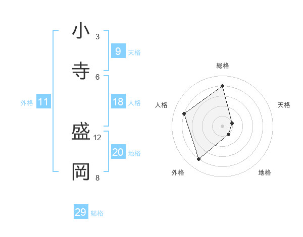 小寺 盛岡さんを姓名の画数から五運を鑑定