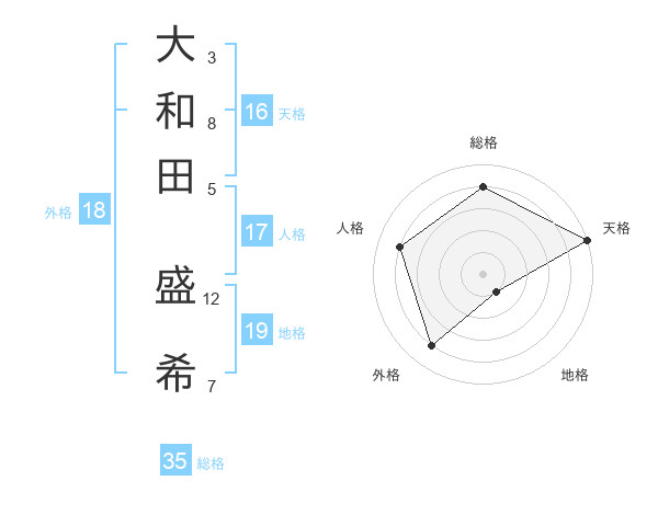 大和田 盛希さんを姓名の画数から五運を鑑定