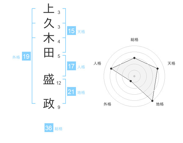 上久木田 盛政さんを姓名の画数から五運を鑑定