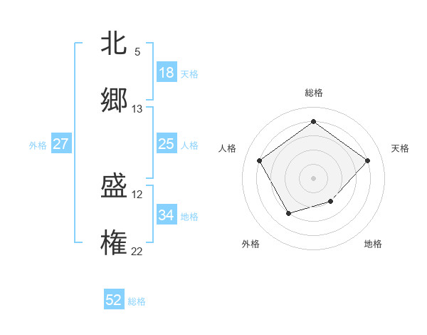 北郷 盛権さんを姓名の画数から五運を鑑定