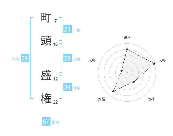 町頭 盛権さんを姓名の画数から五運を鑑定