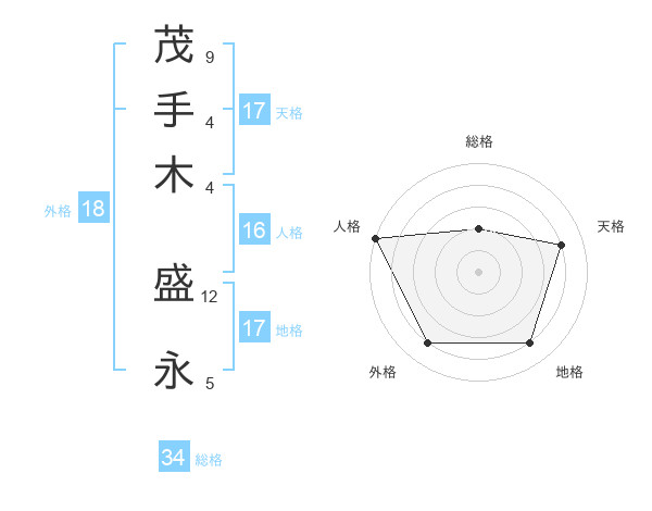 茂手木 盛永さんを姓名の画数から五運を鑑定