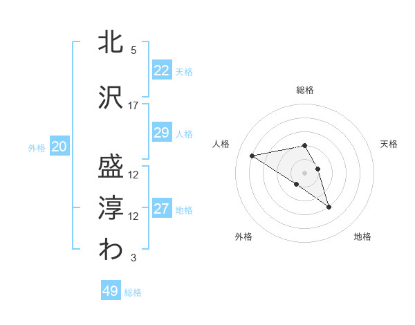 北沢 盛淳わさんの総格は49画の2点!