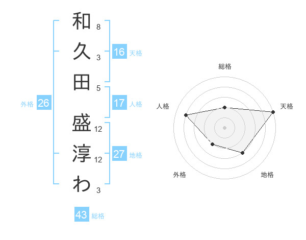 和久田 盛淳わさんを姓名の画数から五運を鑑定