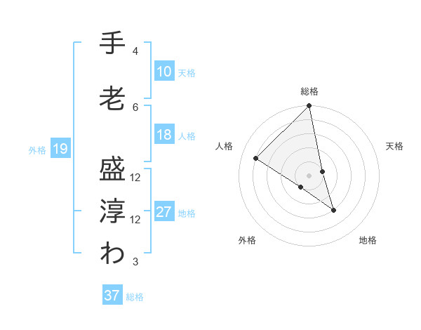 手老 盛淳わさんの総格は37画の5点!