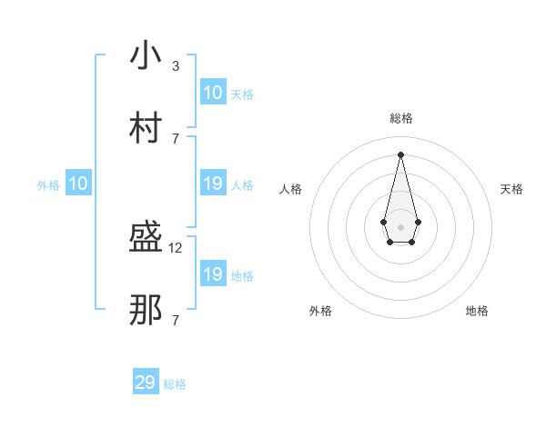 小村 盛那さんの総格は29画の4点!