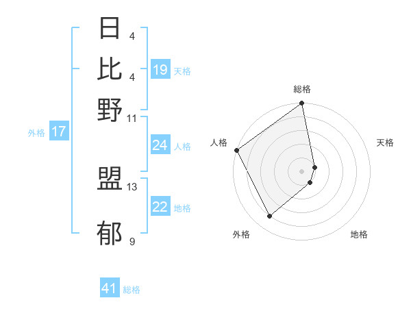 日比野 盟郁さんを姓名の画数から五運を鑑定