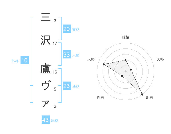 三沢 盧ヴァさんを姓名の画数から五運を鑑定