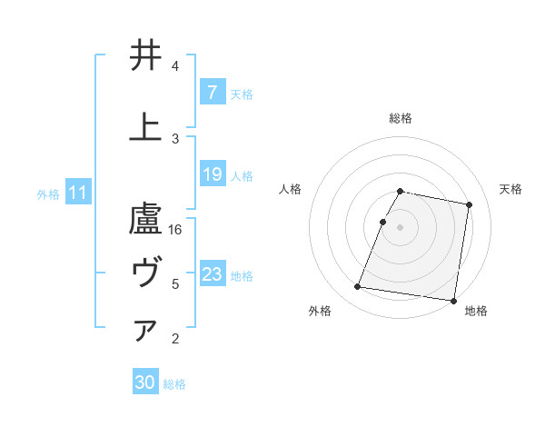 井上 盧ヴァさんを姓名の画数から五運を鑑定