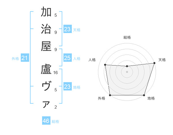 加治屋 盧ヴァさんを姓名の画数から五運を鑑定