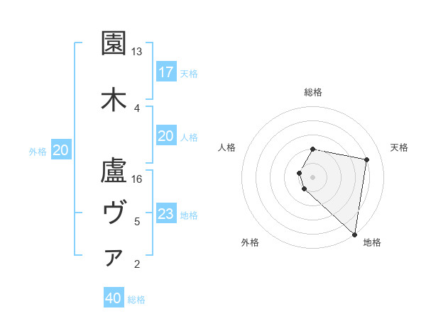 園木 盧ヴァさんの天格は17画の4点!
