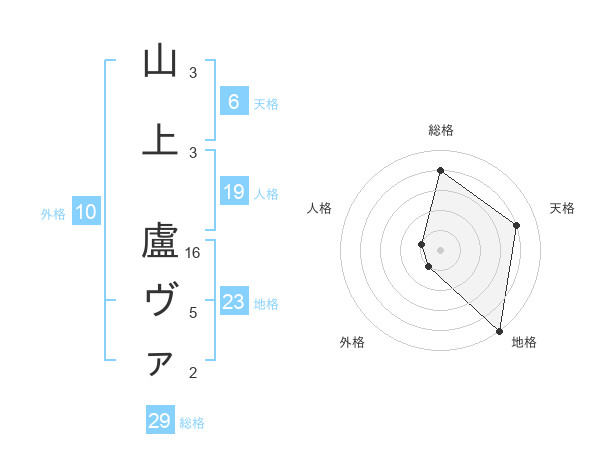 山上 盧ヴァさんを姓名の画数から五運を鑑定