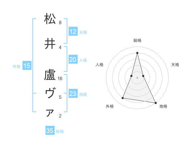 松井 盧ヴァさんを姓名の画数から五運を鑑定