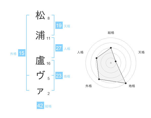 松浦 盧ヴァさんを姓名の画数から五運を鑑定