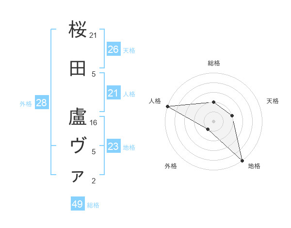 桜田 盧ヴァさんを姓名の画数から五運を鑑定