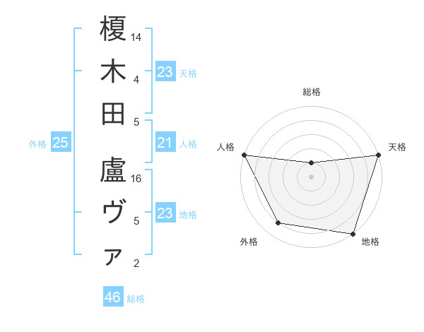榎木田 盧ヴァさんの天格は23画の5点!