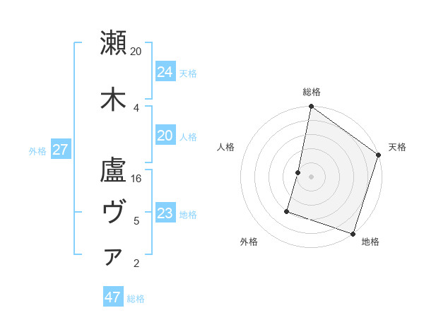 瀬木 盧ヴァさんを姓名の画数から五運を鑑定