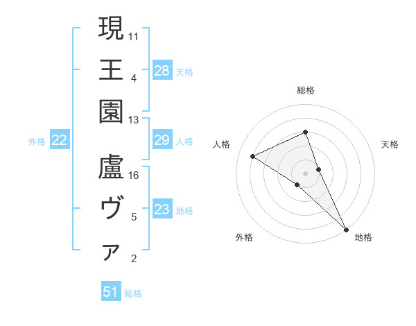 現王園 盧ヴァさんの総格は51画の3点!