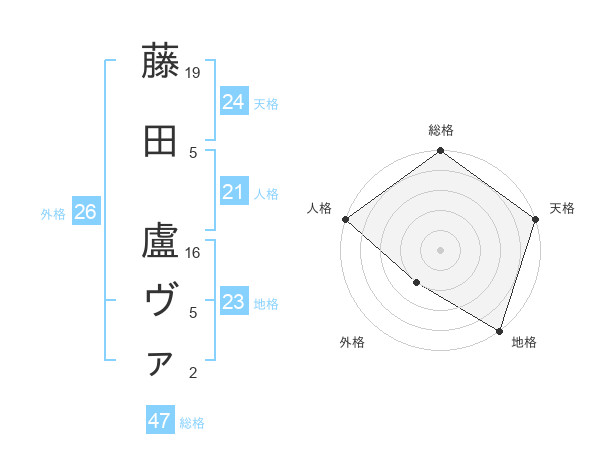 藤田 盧ヴァさんを姓名の画数から五運を鑑定