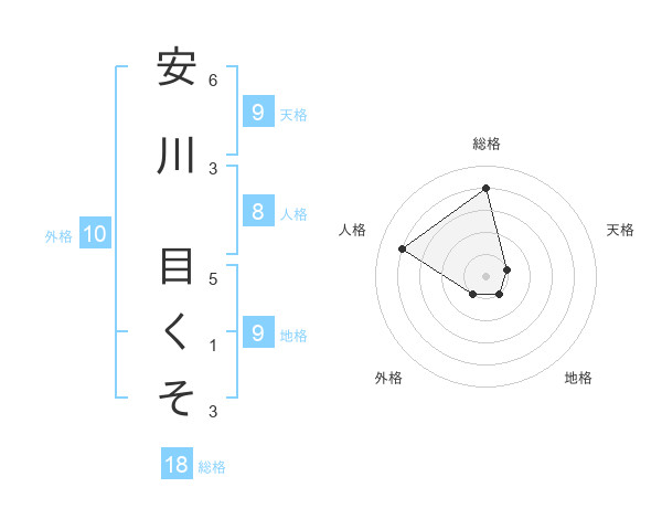 占い結果は姓名判断である以上、良い場合も悪い場合もありますが、決してお名前を誹謗中傷するものでなく、画数の自動計算によって得られたものです。また、本サイトの検索によって得られた鑑定結果で、第三者を誹謗中傷したり名誉を棄損するような行為を禁じます。