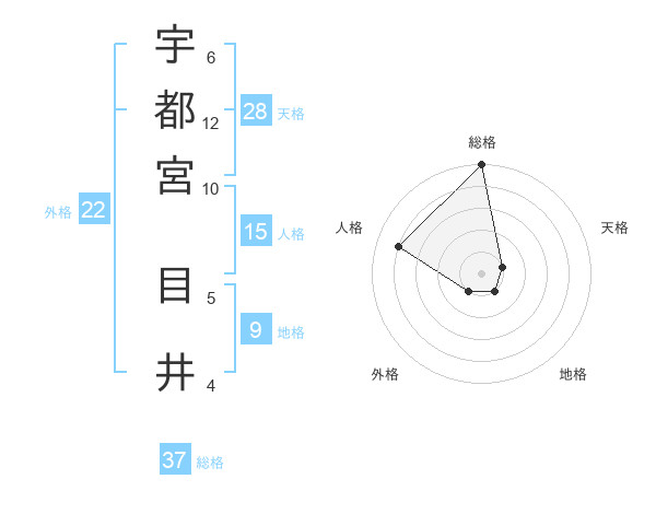 宇都宮 目井さんを姓名の画数から五運を鑑定