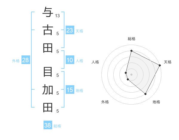 与古田 目加田さんの天格は23画の5点!