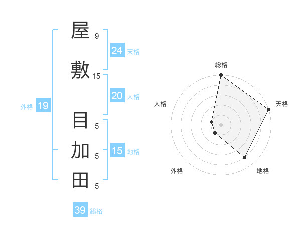 屋敷 目加田さんを姓名の画数から五運を鑑定