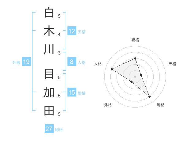 白木川 目加田さんを姓名の画数から五運を鑑定