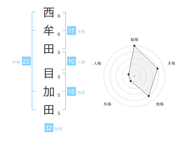 西牟田 目加田さんを姓名の画数から五運を鑑定