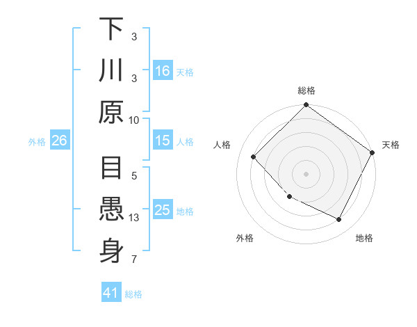 下川原 目愚身さんを姓名の画数から五運を鑑定