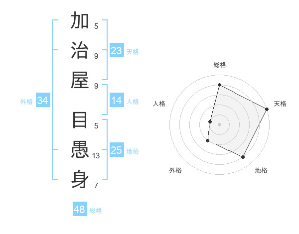加治屋 目愚身さんを姓名の画数から五運を鑑定
