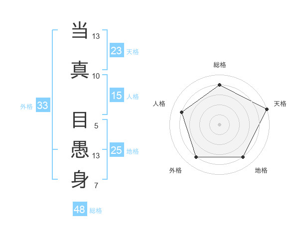 当真 目愚身さんを姓名の画数から五運を鑑定