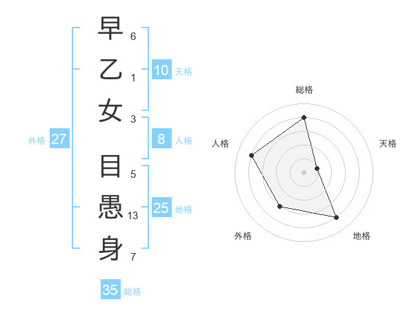 早乙女 目愚身さんの総格は35画の4点!