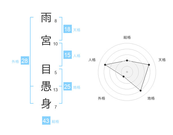 雨宮 目愚身さんの総格は43画の2点