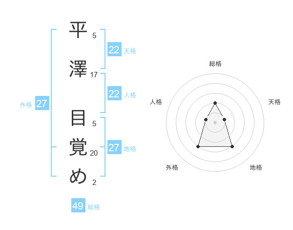 平澤 目覚めさんを姓名の画数から五運を鑑定
