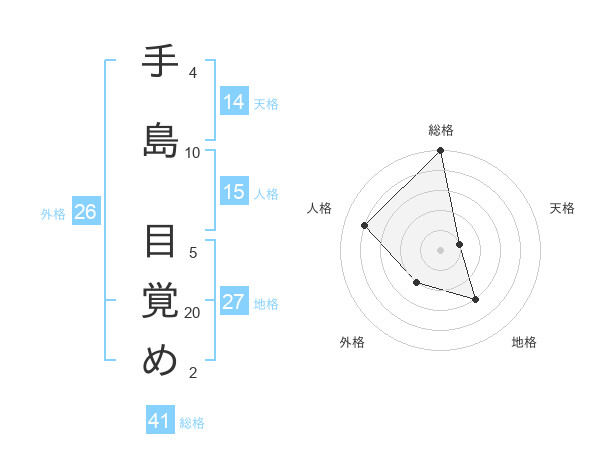手島 目覚めさんを姓名の画数から五運を鑑定