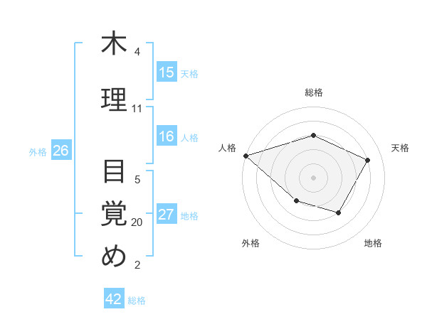木理 目覚めさんを姓名の画数から五運を鑑定