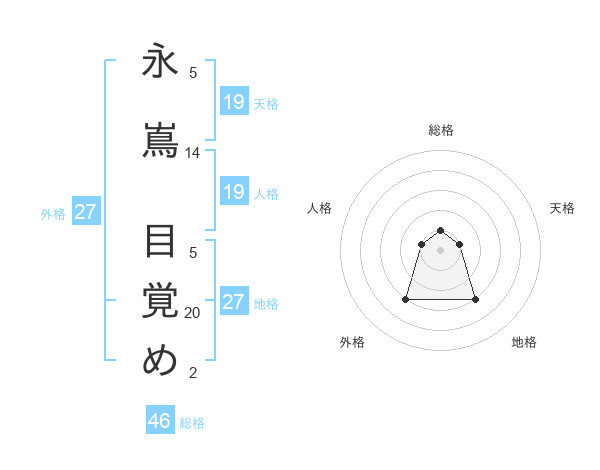 永嶌 目覚めさんを姓名の画数から五運を鑑定