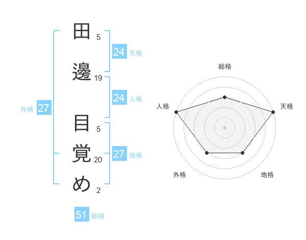 田邊 目覚めさんを姓名の画数から五運を鑑定