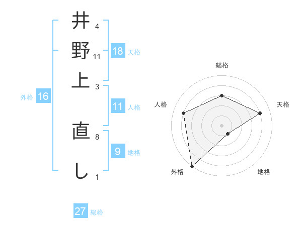 井野上 直しさんの総格は27画の3点!