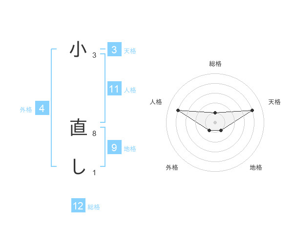 小 直しさんの総格は12画の1点!