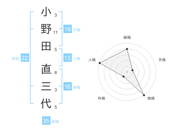 小野田 直三代さんを姓名の画数から五運を鑑定