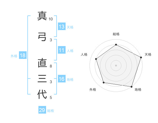 真弓 直三代さんを姓名の画数から五運を鑑定
