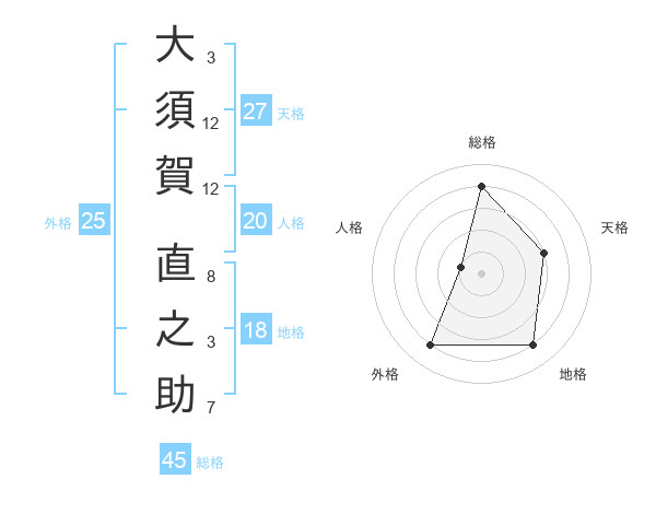 大須賀 直之助さんを姓名の画数から五運を鑑定