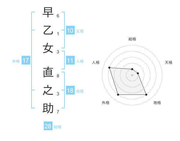 早乙女 直之助さんを姓名の画数から五運を鑑定