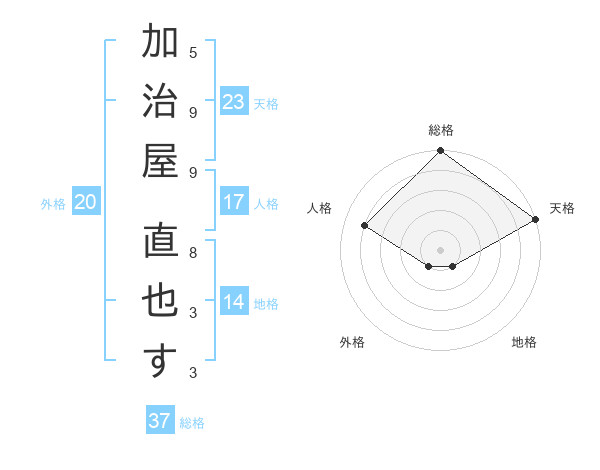 加治屋 直也すさんを姓名の画数から五運を鑑定