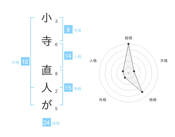 小寺 直人がさんを姓名の画数から五運を鑑定