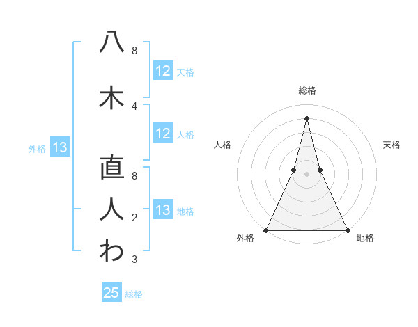 八木 直人わさんの地格は13画の5点!
