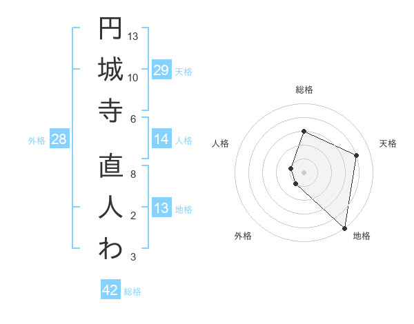 円城寺 直人わさんを姓名の画数から五運を鑑定