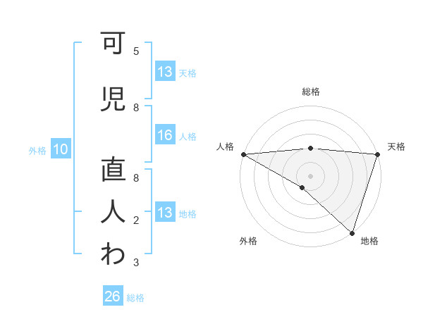 可児 直人わさんの天格は13画の5点!